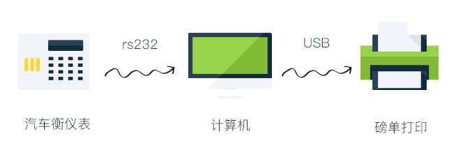 適用場景:一臺電子汽車衡實現(xiàn)計算機稱重及打印磅單的簡單作業(yè);